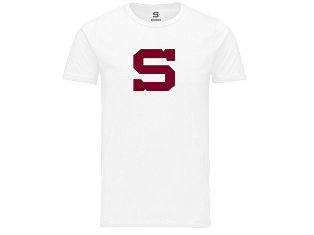Ikonické bílé tričko z kolekce basic s rudým logem na hrudi.