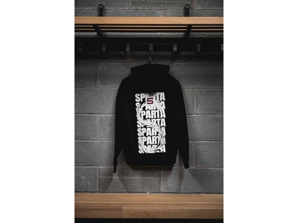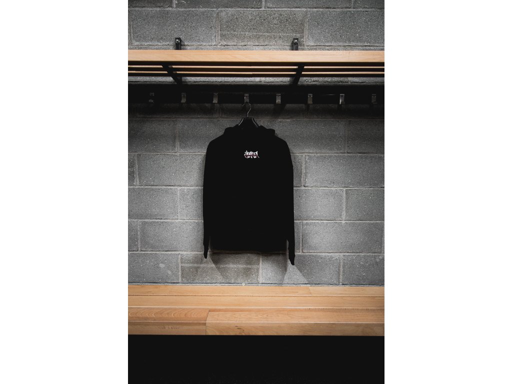 Černá unisex mikina s kapucí s designem od Josefa Vyviala.