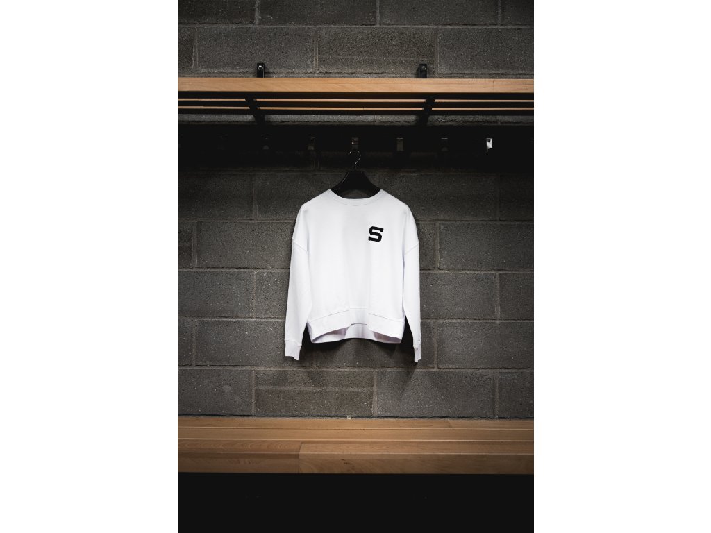 Bílá dámská mikina s designem od Nikoly Vaňkátové.