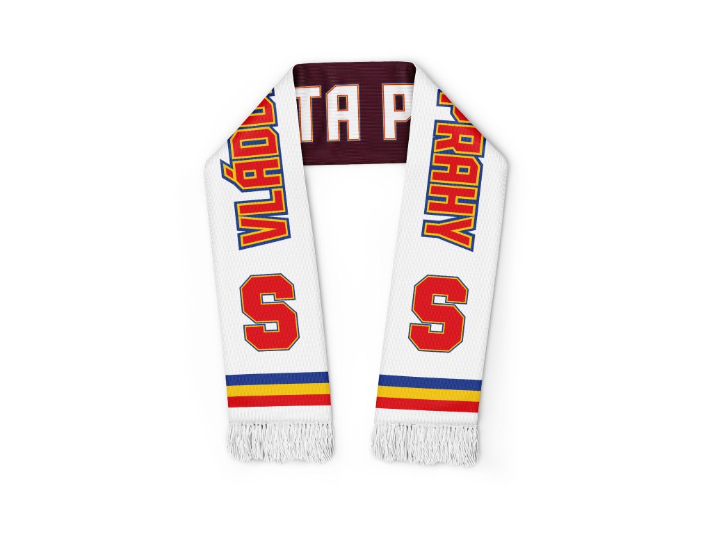 Pletená šála z kolekce Vládci Prahy - Legendy 2006.